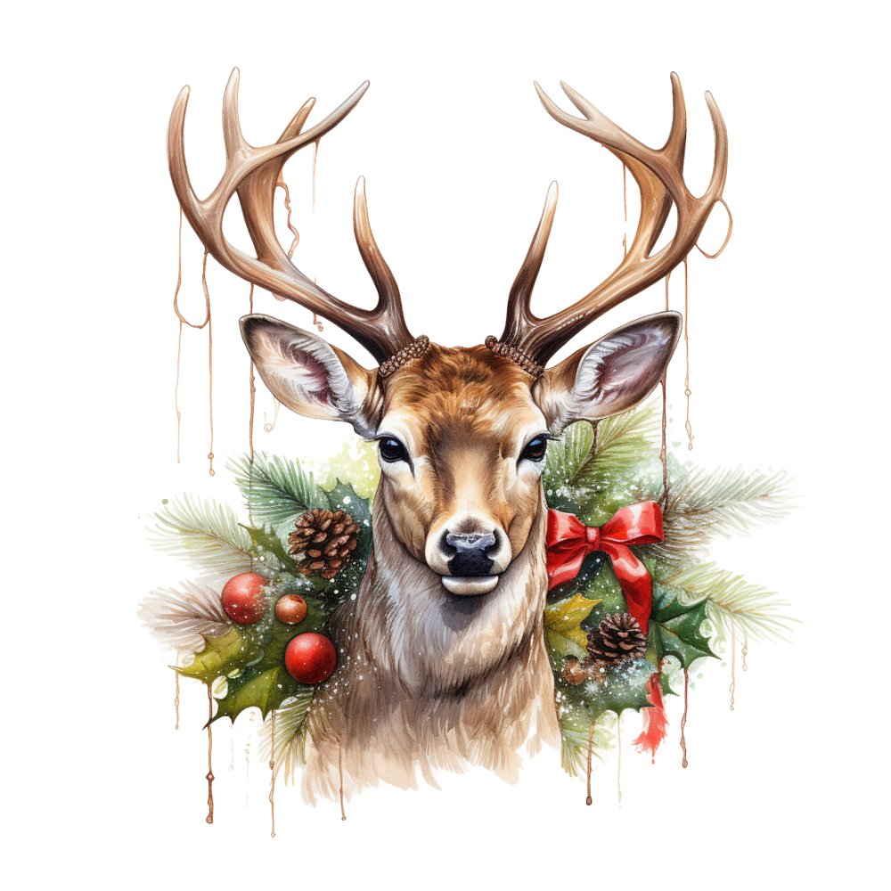 Festive Buck with Christmas Decor #7 Fabric Panel