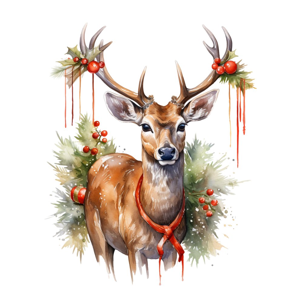 Festive Buck with Christmas Decor #8 Fabric Panel