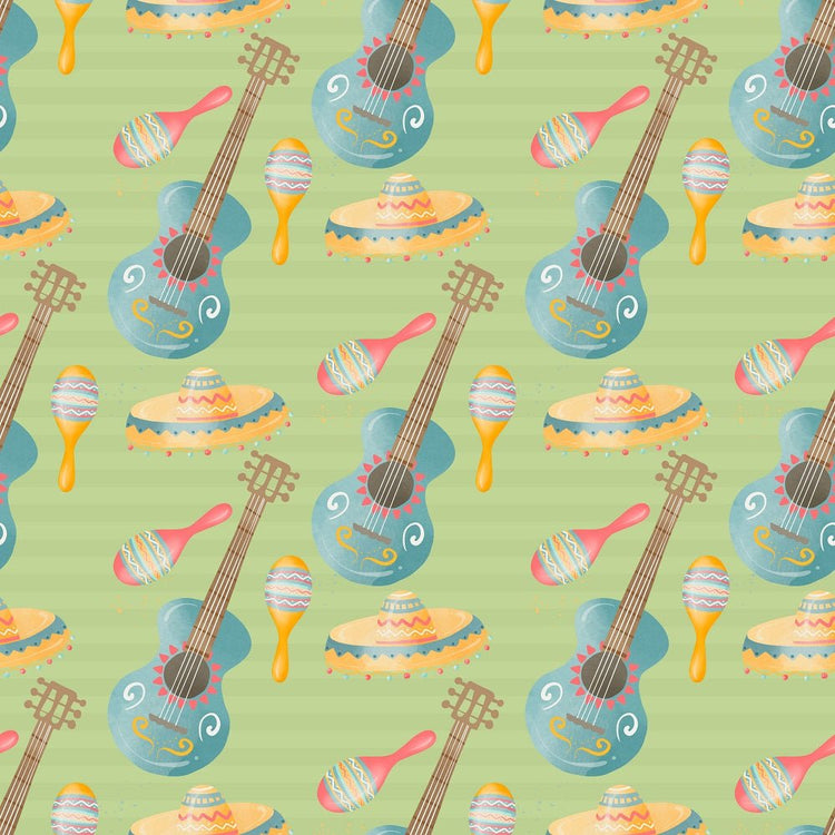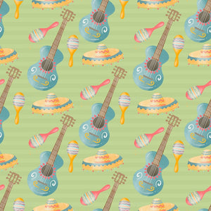 The Green Fiesta! Music Fabric is part of the Fiesta! Fabric Collection printed by Sew Creative Fabrics. Digitally Printed on 100% cotton.