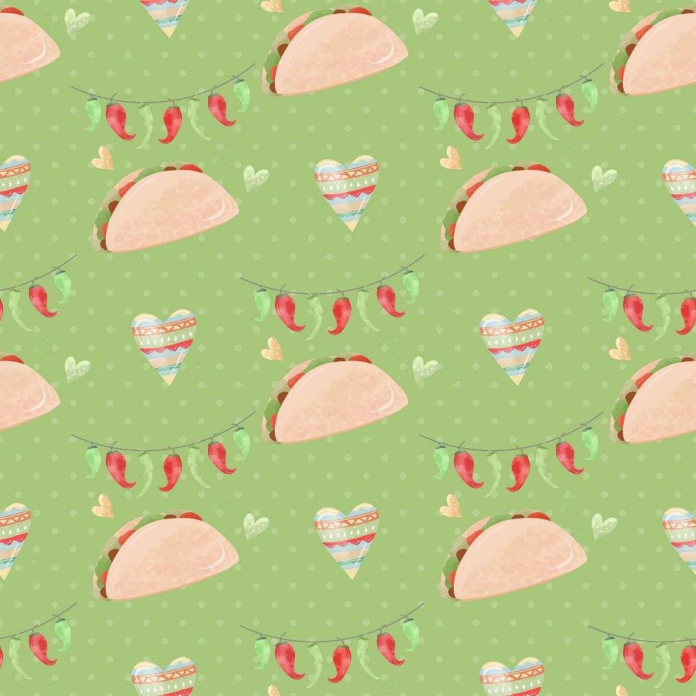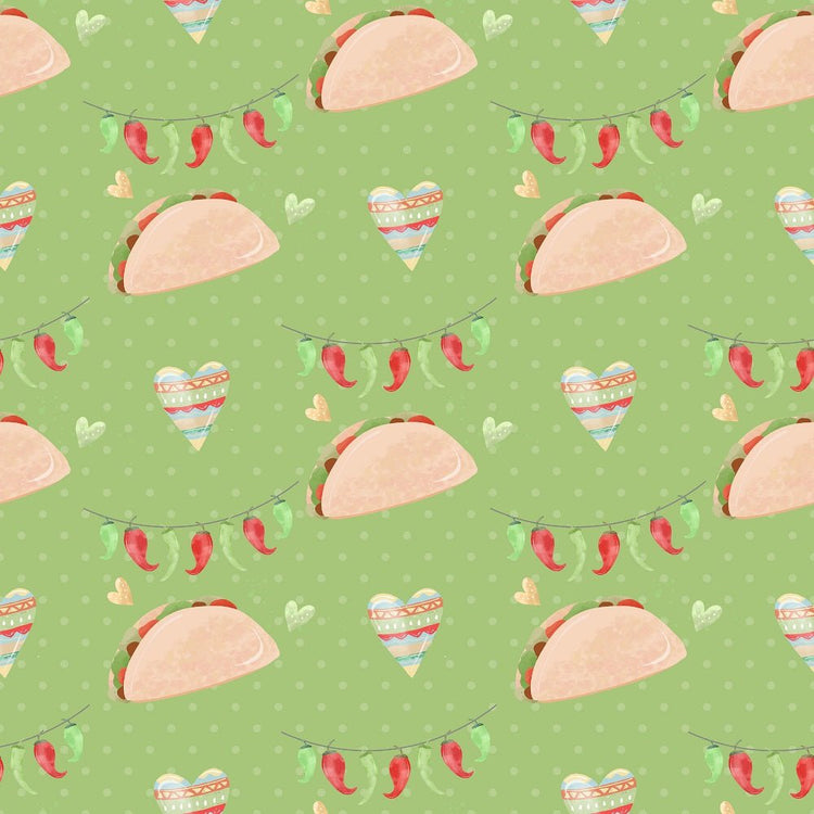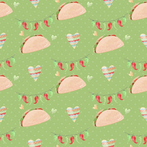 The Green Fiesta! Tacos with Peppers Fabric is part of the Fiesta! Fabric Collection printed by Sew Creative Fabrics. Digitally Printed on 100% cotton.