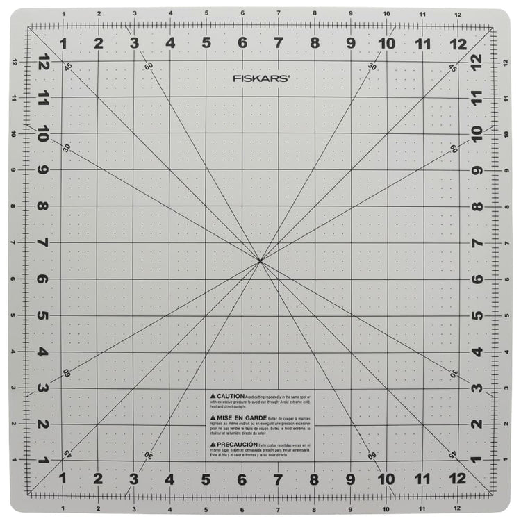 The Fiskars 13" x 13" Rotating Cutting Mat is excellent for cutting out applique or squaring off large quilting blocks up to 12.5" at easy angles, thanks to the rotating design of this cutting mat. This self-healing mat has an easy-to-read measuring guide, plus bias lines to make accurate shape cutting swift and precise. The 30, 45, and 60-degree bias lines make creating triangle and star shapes effortless. The Fiskars 13" x 13" Rotating Cutting Mat is the perfect addition for any quilter.