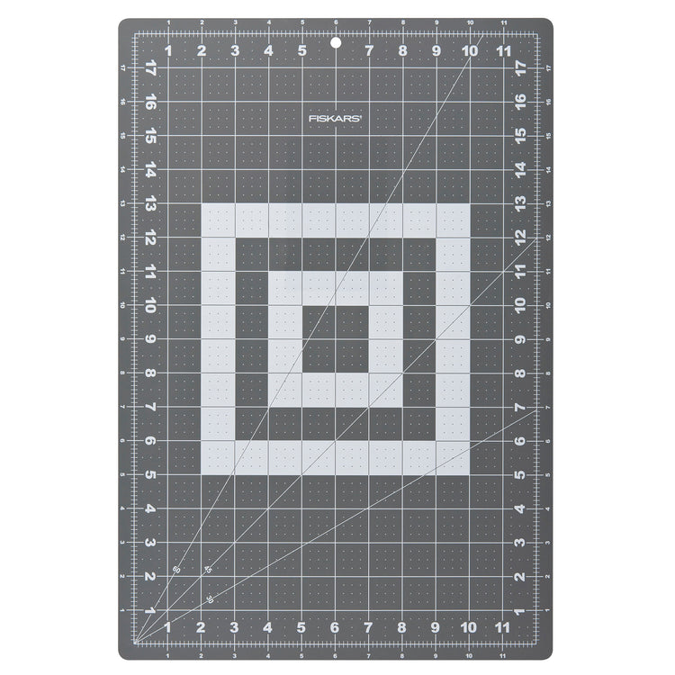 Fiskars' compact Cutting Mat is ideal for easy transport, convenient storage, or cutting fabric in a small workspace. This 12" by 18" mat is self-healing and double-sided. It features 1" grid lines on both sides and 30 °, 45 °, and 60 ° bias lines to make cutting angles easier.
