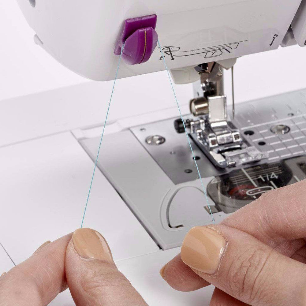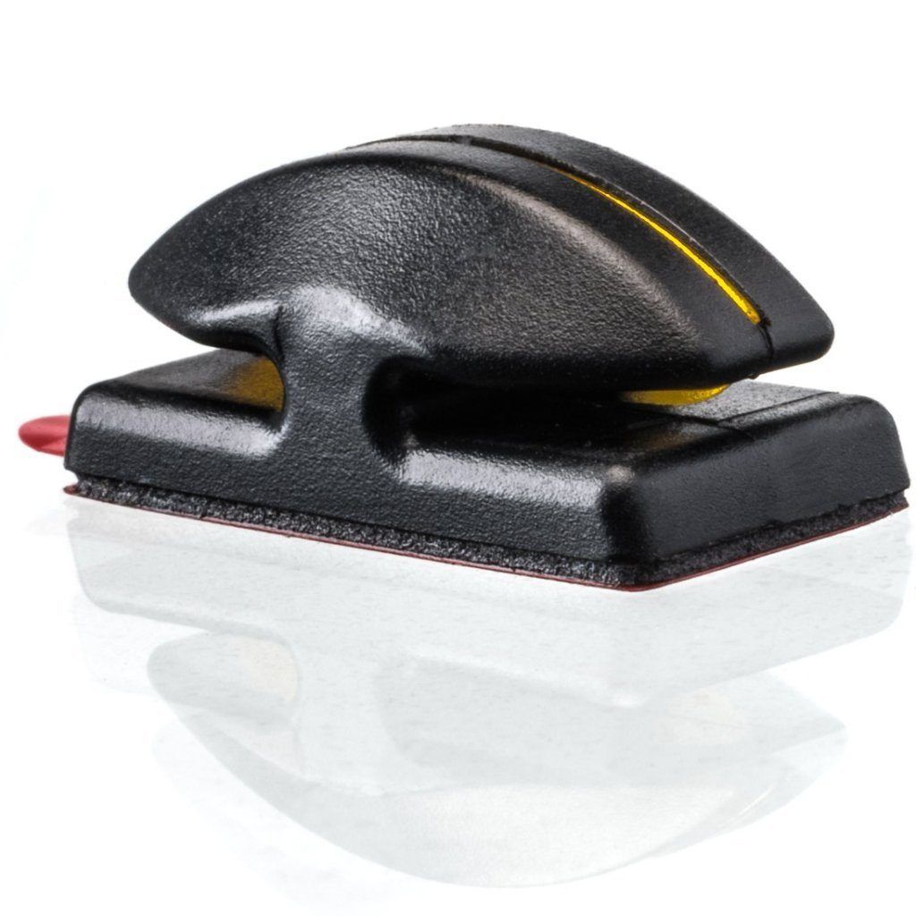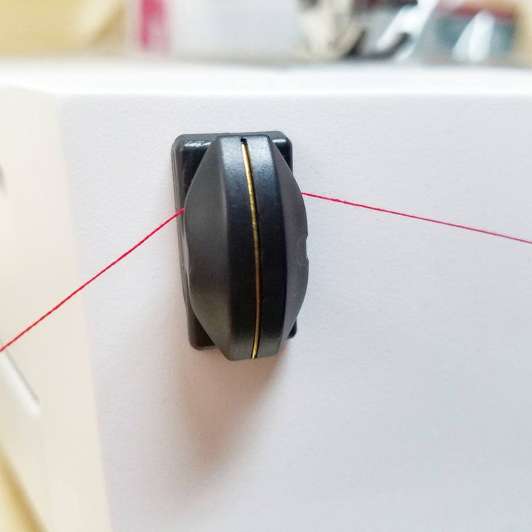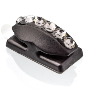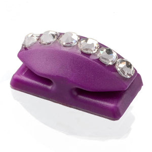 Thread Cutterz Flat Mount Thread Cutters are a convenient tool that you can mount to your sewing machine or any clean, flat surface. The Flat Mount Thread Cutters will easily slice through yarn, thread, and embroidery floss. This tool is ideal if your sewing machine doesn't have a thread cutter, it's become too dull to use, or if it's in an inconvenient location. Flat Mount Thread Cutters include a heavy-duty 3M adhesive that will adhere to most surfaces, and each side has a stainless steel blade that will stay sharp after multiple uses. The Flat Mount Thread Cutters come in four styles, basic black, and purple, or you can add some flash to them and get purple or black with genuine Swarovski crystals along the top.