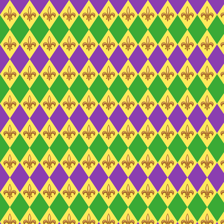 The Fleur-de-lis Diamond Fabric is part of the Mardi Gras Fabric Collection printed by Sew Creative Fabrics. Digitally Printed on 100% cotton.