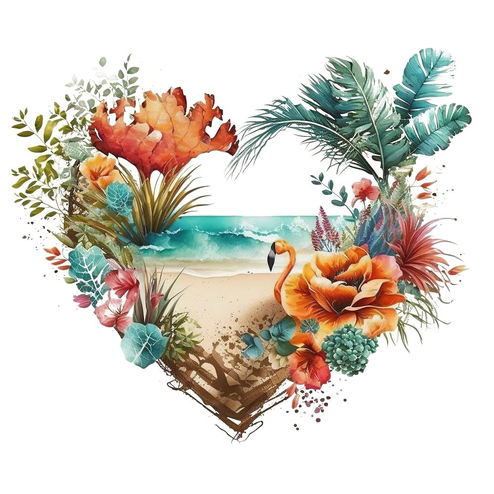Floral Beach Heart #2 Fabric Panel