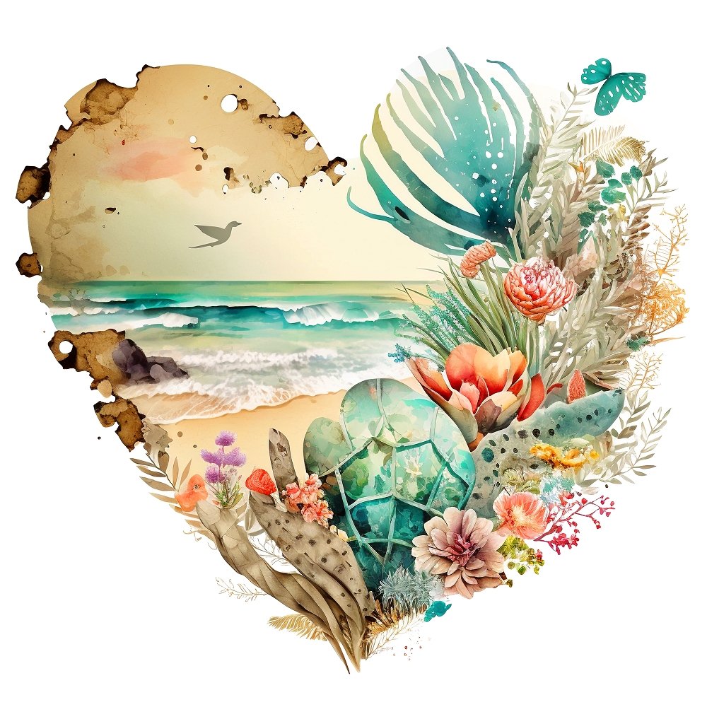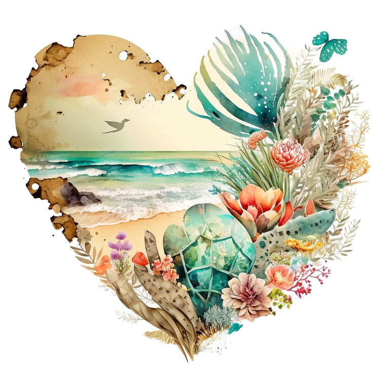 Floral Beach Heart #3 Fabric Panel