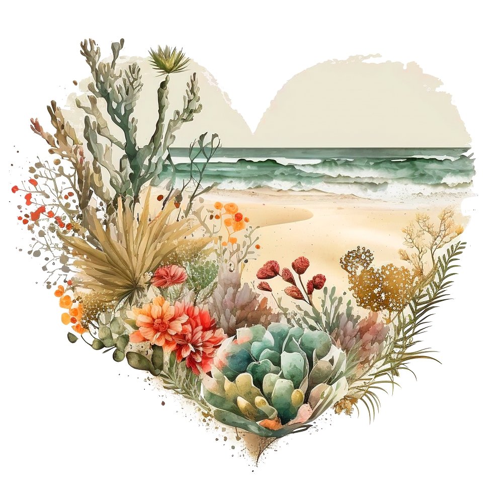The Floral Beach Heart 4 Fabric Panel is part of the Beach Hearts Fabric Collection printed by Sewing Parts Online. Digitally Printed on 100% cotton. This panel is available in 6 different sizes: