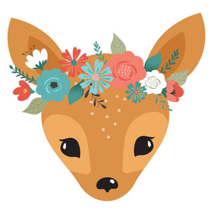 The Floral Crown Deer Fabric Panel is part of the Cute Animals & Florals Fabric Collection printed by Sewing Parts Online. Digitally Printed on 100% cotton. This panel is available in 6 different sizes: