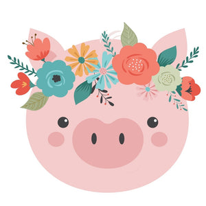 The Floral Crown Pig Fabric Panel is part of the Cute Animals & Florals Fabric Collection printed by Sewing Parts Online. Digitally Printed on 100% cotton. This panel is available in 6 different sizes: