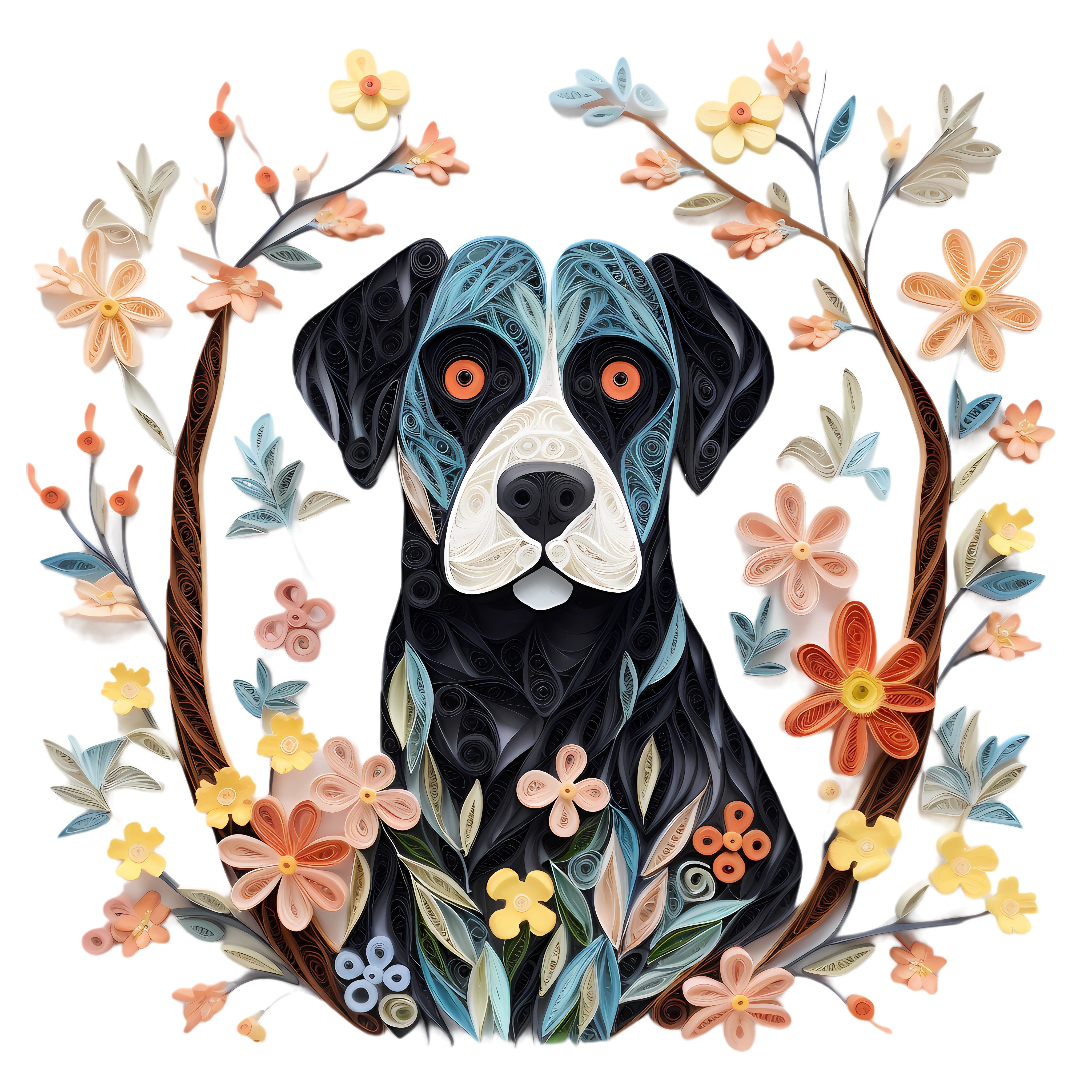 Floral Dogs #23 Fabric Panel