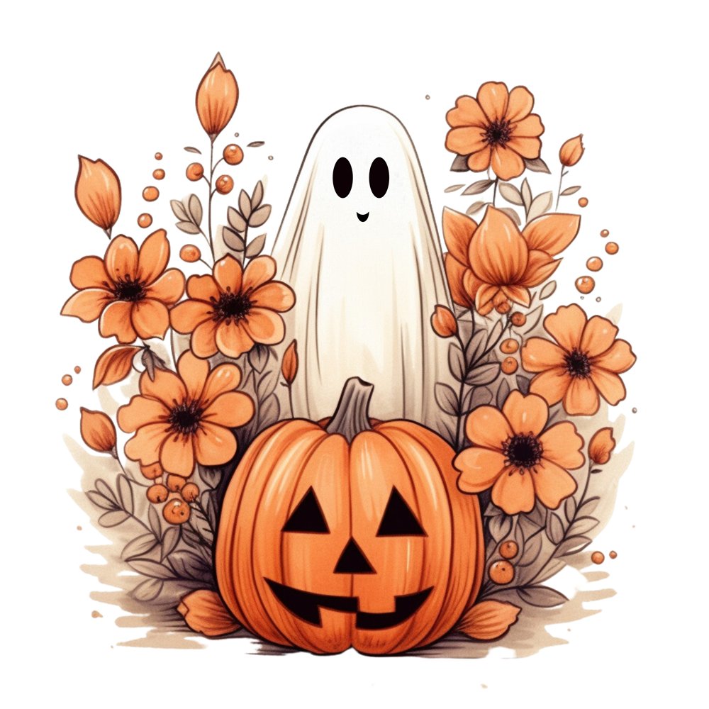The Floral Ghost Pumpkin Fabric Panel is a part of the Halloween Fabric Collection printed by Sewing Parts Online. Digitally Printed on 100% cotton.