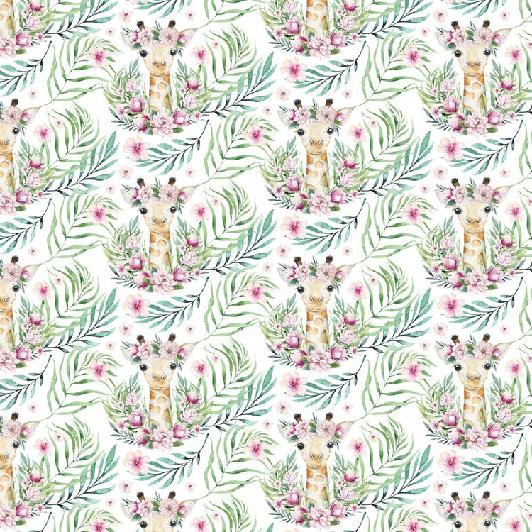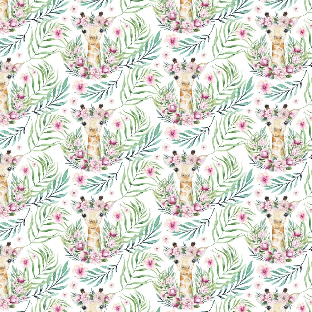 The Floral Giraffe Fabric is a part of the Animal Fabric Collection printed by Sewing Parts Online. Digitally Printed on 100% cotton and measures 44-45" wide.