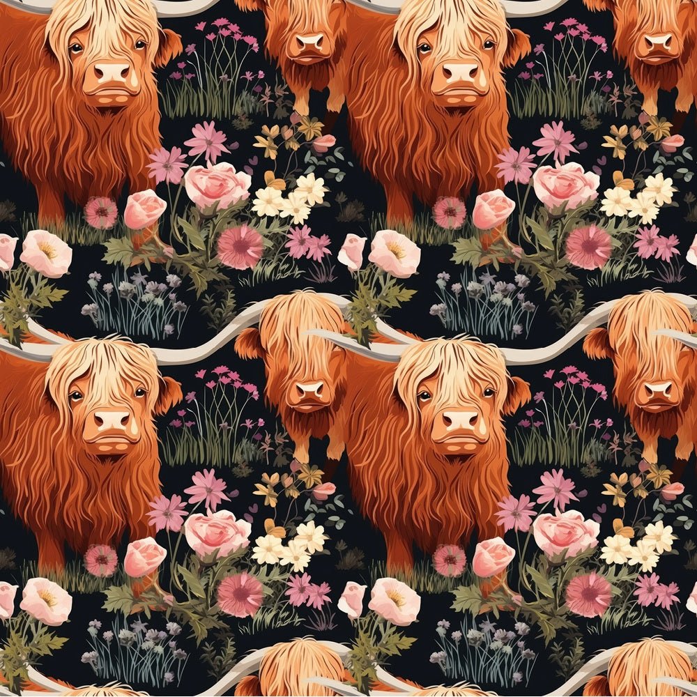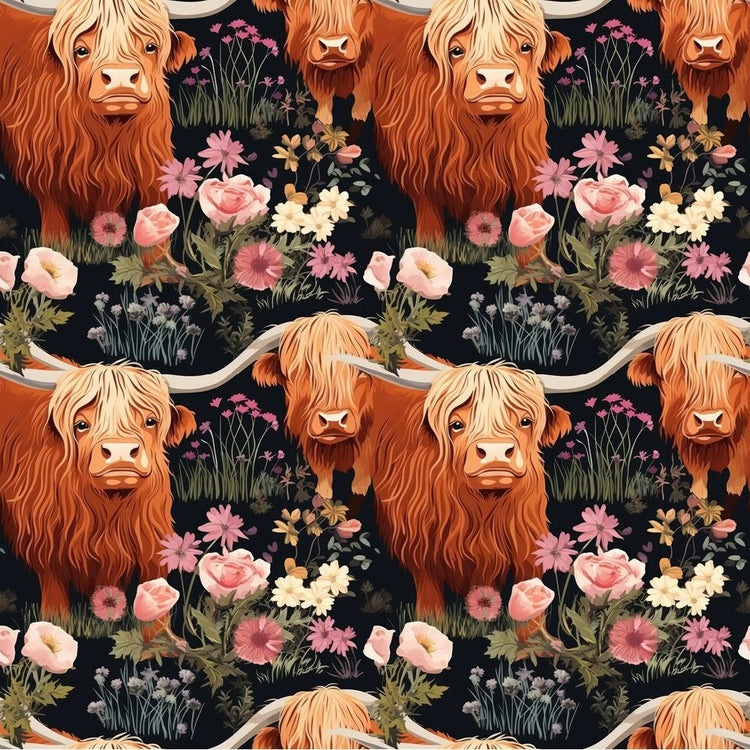 Floral Highland Cows Pattern #6 Fabric