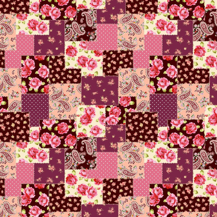 Floral Paisley Patchwork Fabric - Berry
