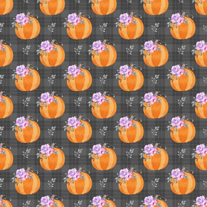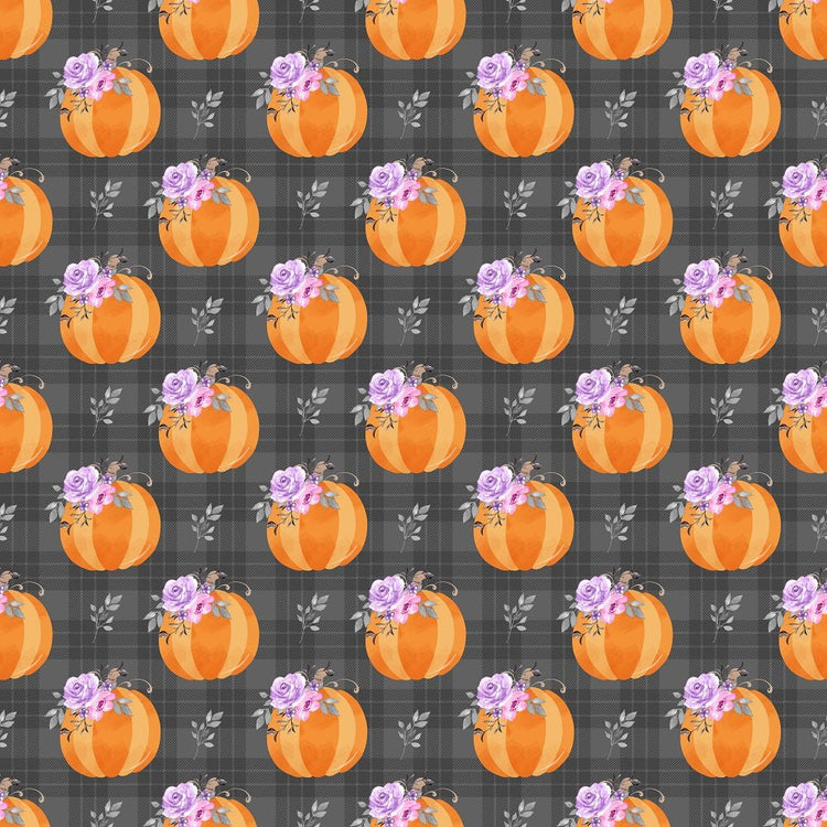 Floral Pumpkins on Buffalo Plaid Fabric - Black