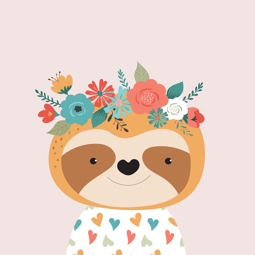The Floral Sloth Fabric Panel is part of the Cute Animals & Florals Fabric Collection printed by Sewing Parts Online. Digitally Printed on 100% cotton. This panel is available in 6 different sizes: