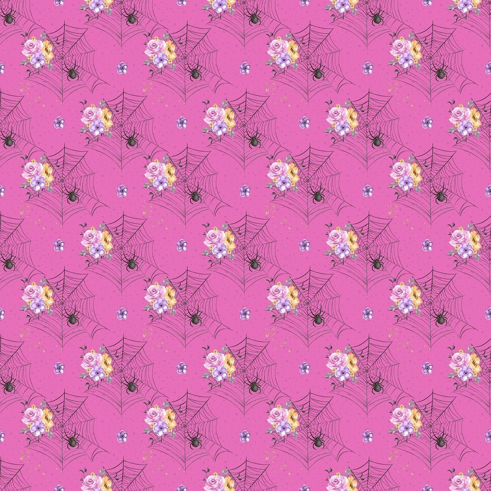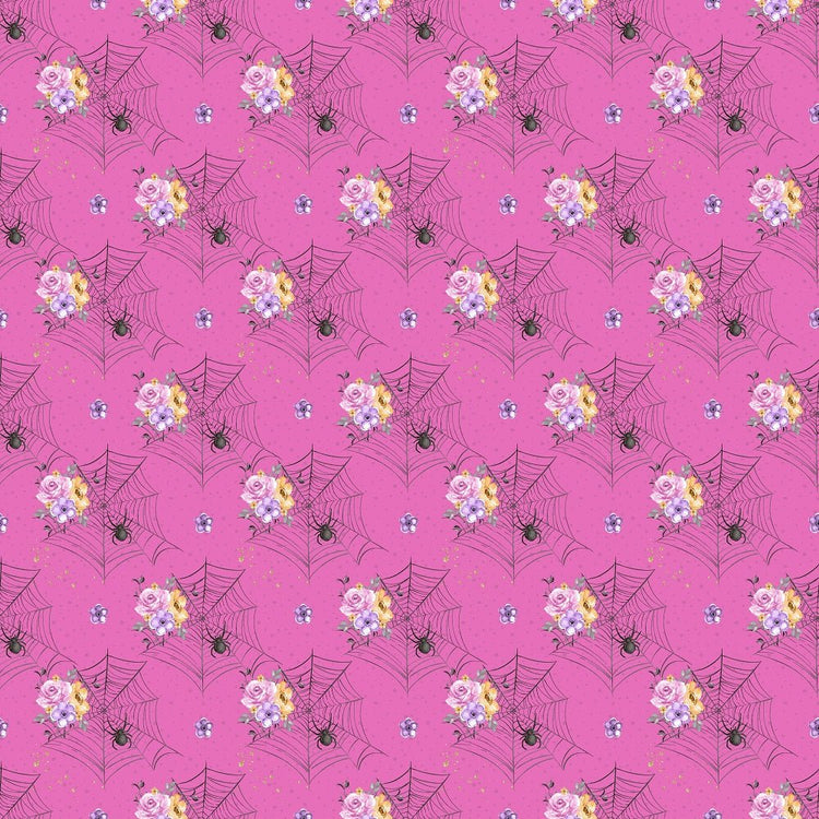 The Pink Floral Spider Webs Fabric is part of the Floral Halloween Fabric Collection printed by Sew Creative Fabrics. Digitally Printed on 100% cotton.
