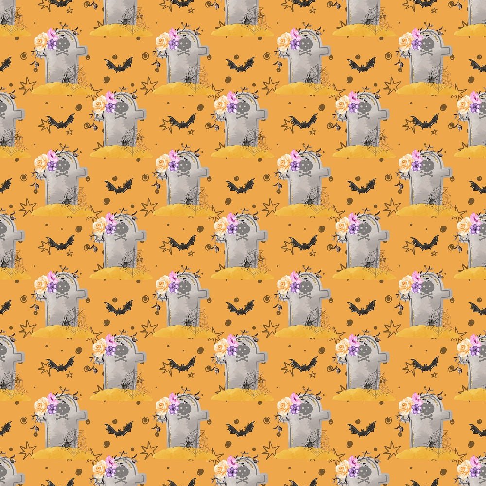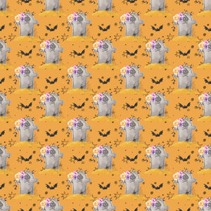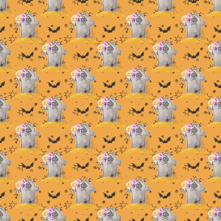 The Orange Floral Tombstones & Bats Fabric is part of the Floral Halloween Fabric Collection printed by Sew Creative Fabrics. Digitally Printed on 100% cotton.