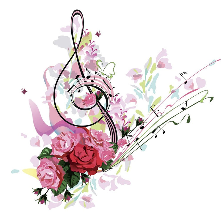 The Floral Treble Clef Fabric Panel is part of the Abstract Musical Notes Fabric Collection printed by Sewing Parts Online. Digitally Printed on 100% cotton. This panel is available in 6 different sizes: