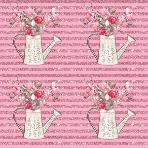 Floral Watering Pot & Stripes Fabric - Pink Details