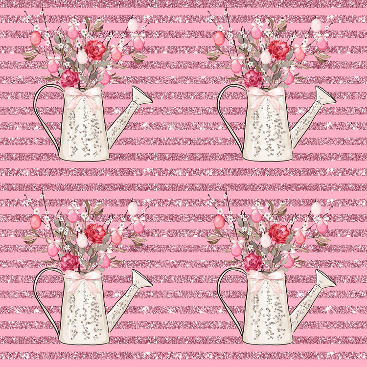 The Pink Floral Watering Pot & Stripes Fabric is part of the Easter Lamb Fabric Collection printed by Sew Creative Fabrics. Digitally Printed on 100% cotton.