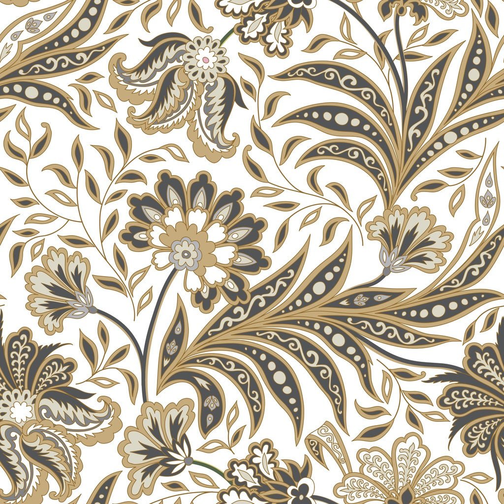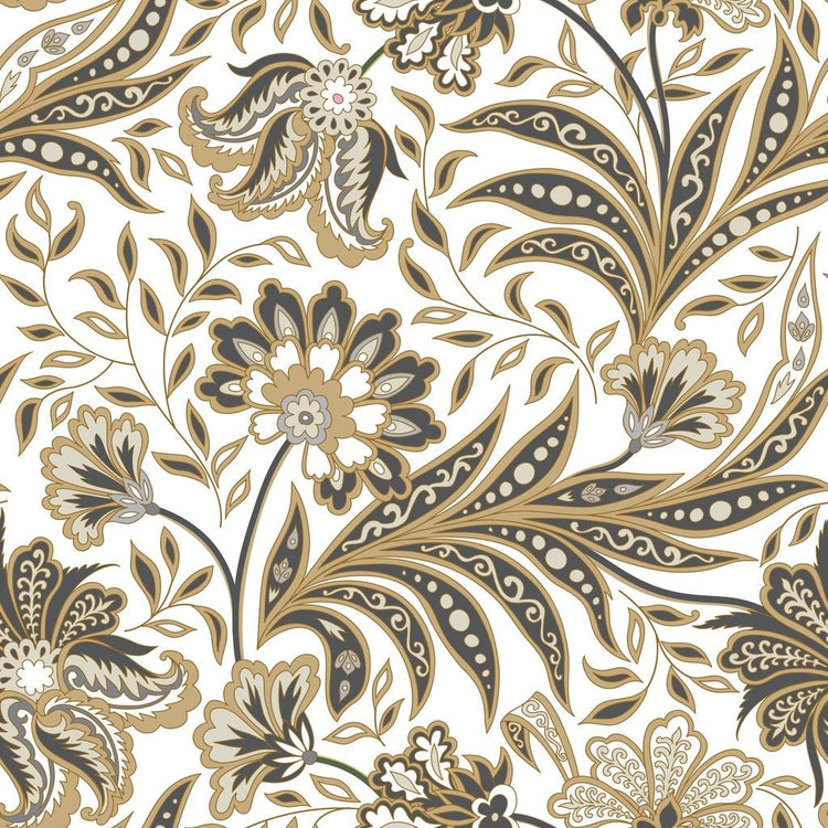 Flourish Oriental Flowers Fabric - White Details