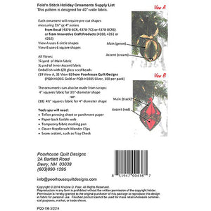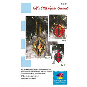 Decorate your tree this season with your own ornaments. The Fold 'N Stitch Holiday Ornaments Pattern requires Bosal's pre-cut shape blanks (not included). Sew two different styles of 4" tall spheres or squares. You can start them on your machine and finish them by hand. Keep the finished ornament as a treasured keepsake or gift them to others. Add embellishments like seed beads and jingle bells to make your decorations stand out even more!