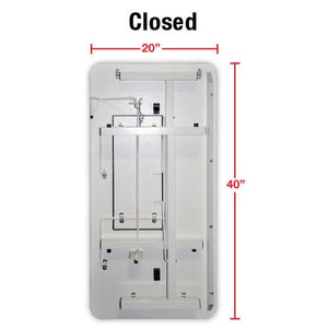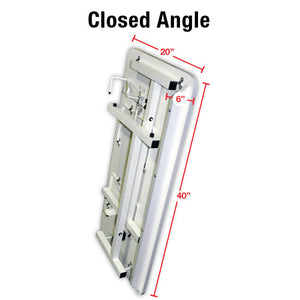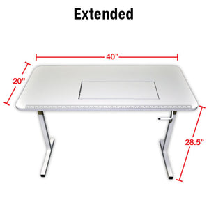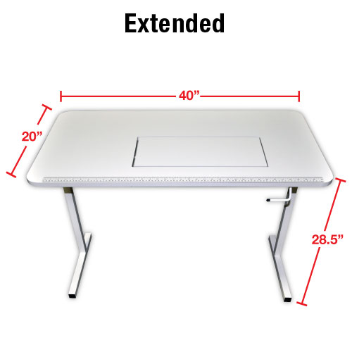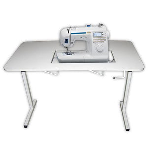 The Folding Sewing Table is both portable, easy to use, and comes completely assembled with sturdy steel legs and a smooth laminate surface. It can be used for free arm sewing, flatbed sewing, and many other projects. The flatbed sewing surface adjusts for various sewing machine makes and models and holds machines up to 17.5" W x 7.37" D. This table fold flat for easy storage and can even fit under a bed.