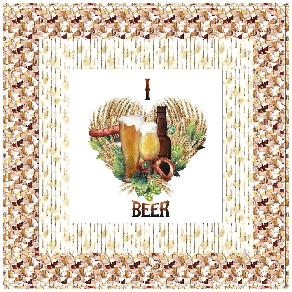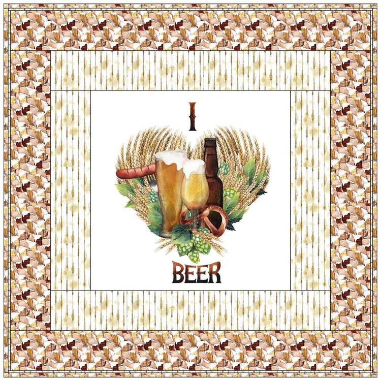 The For the Love of Beer Wall Hanging includes everything that you need to make the quilt - the instructions and a total of 3 1/2 yards of fabric and a 23" panel. It has two borders and is finished with a flange binding. Batting is sold separately. The finished size of this quilt is 42" x 42".