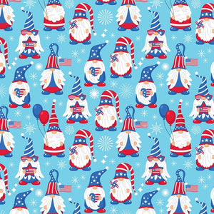 The Fourth Of July Gnome Fabric is a part of the Holiday Gnomes Fabric Collection printed by Sew Creative Fabrics. Digitally Printed on 100% cotton and measures 42-43" wide.