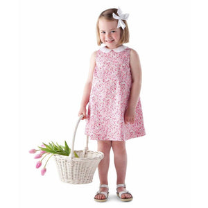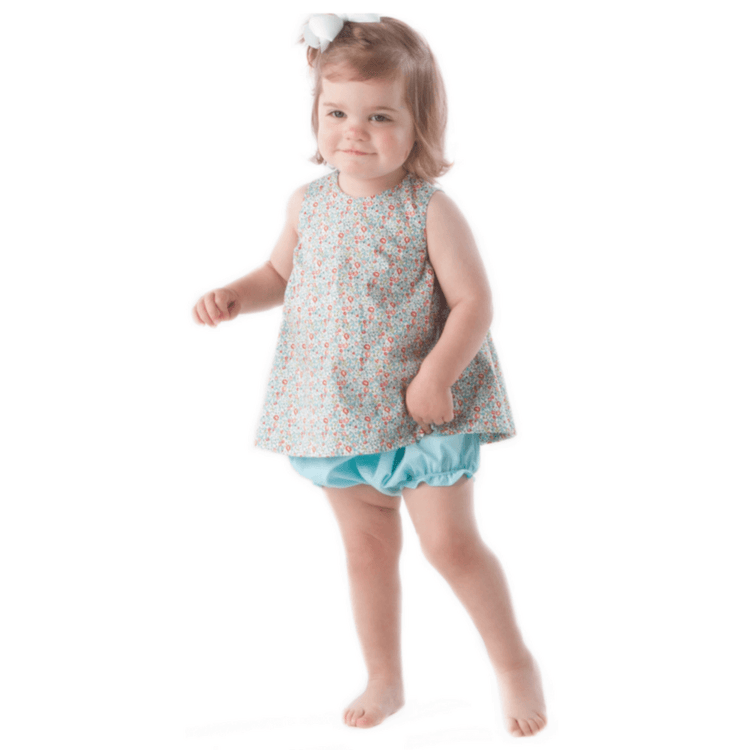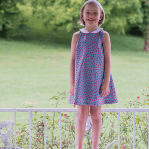 The Frannie Dress Pattern makes a swing style sundress in many sizes. The regular Fannie Dress Pattern includes six sizes for children 18 months to 6 years of age. The Frannie Baby Dress Pattern includes five sizes for children 3 to 24 months This adorable little dress can be made with or without the collar. The Frannie Dress features a button on the back and the option for adding elastic in the underarm sections for growing children. The Frannie Dress also features a liner which can be hemmed separately from the dress or hemmed to the outer layer. The Frannie Baby includes a pattern for bloomers. See images for fabric and tool requirements.