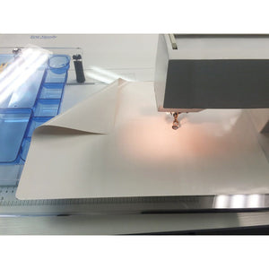 This Free Motion Glider is ideal for free motion quilters. The Free Motion Glider is a 12"x18" mat with a pre-cut hole for your thread and needle. Easily glide your fabric along the top of the mat without having to stop and re-adjust. The bottom of the Free Motion Glider has a tacky underside that "sticks" to your sewing machine or extension table to prevent slipping. Trim down the Free Motion Glider with scissors to make it better fit your device.