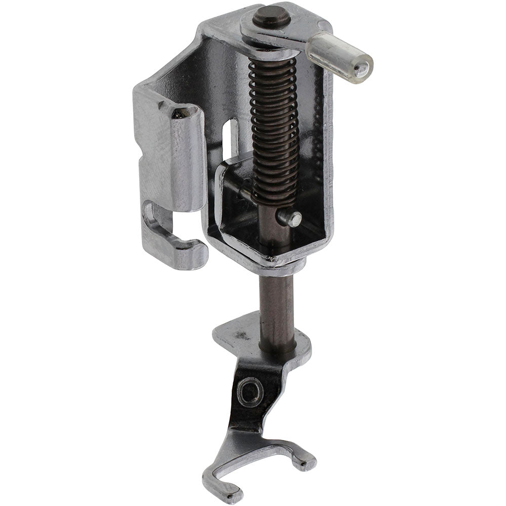 The Free Motion Spring Foot gives clear visibility when doing free motion quilting or embroidery. The spring action keeps the fabric from lifting with the needle as the stitch is being formed which helps eliminate thread breakage with specialty or heavier threads. Be sure to use the appropriate needle for the thread you are using.