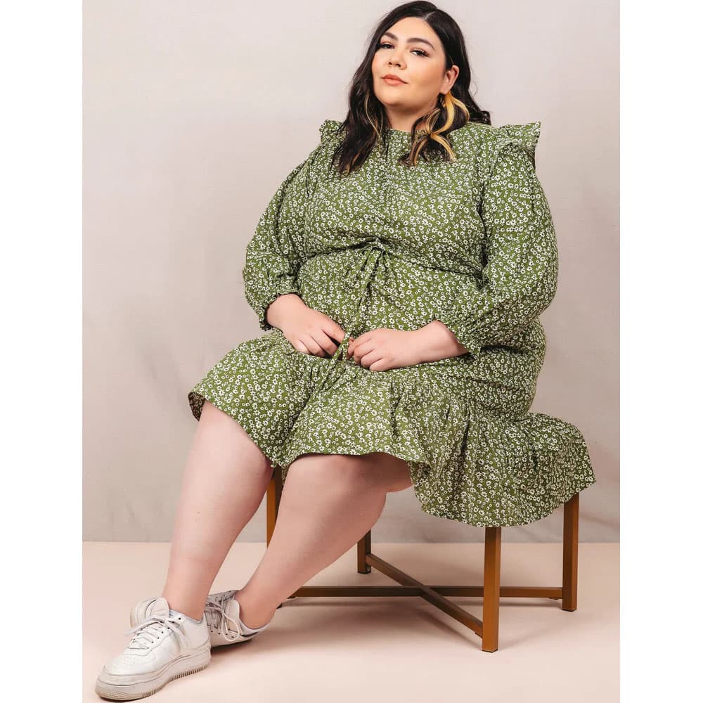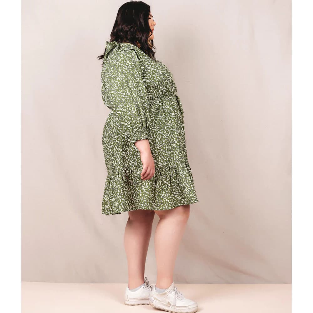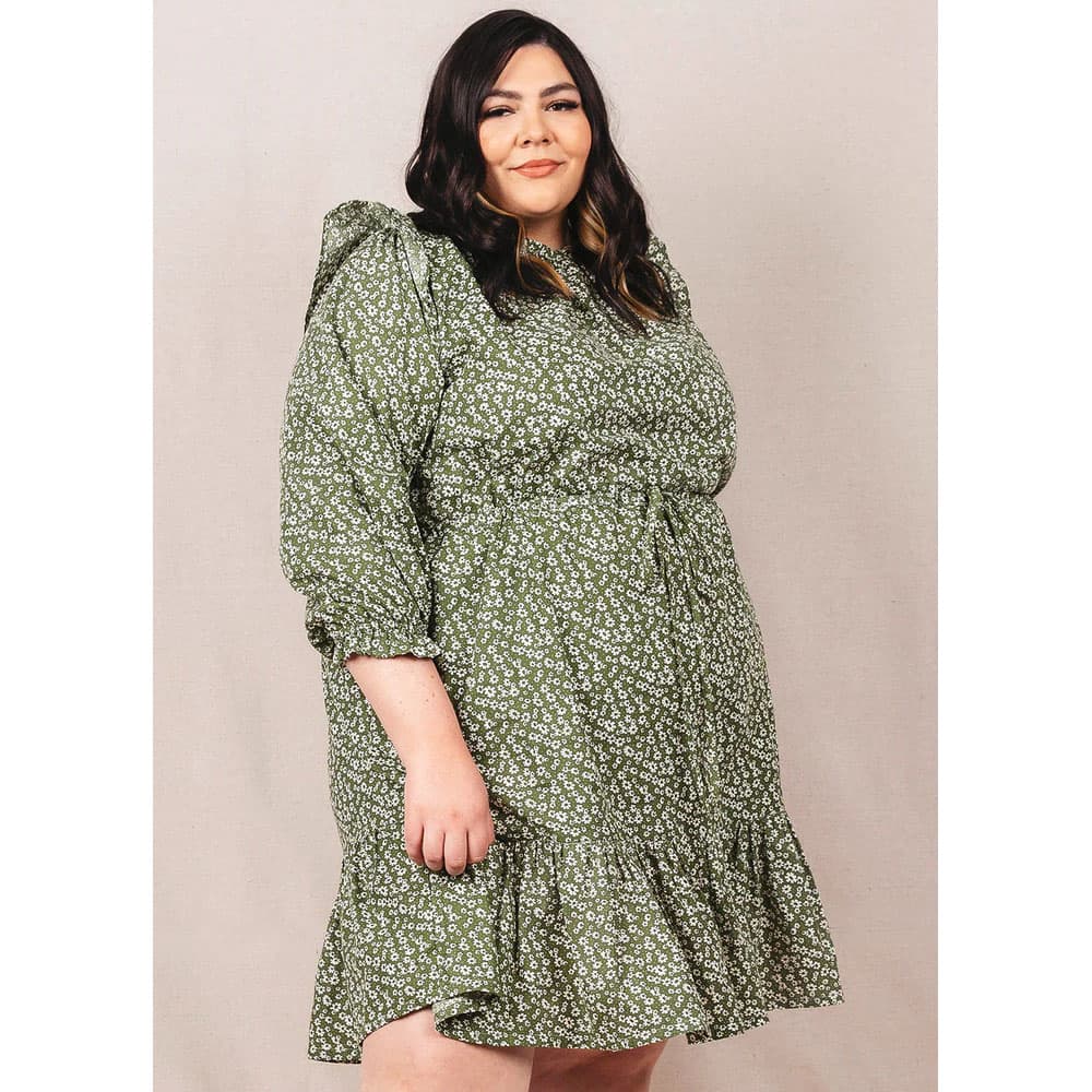 The Davenport Dress made by Friday Pattern Company is simple and unique. This dress is perfect to wear, whether shopping or hanging out at the house. These ruffles make you feel cute and comfortable, with the hem hitting right above your knees. The Davenport has full sleeves, an elastic ruffle hem, and a flutter detail on the shoulder. The neckline is gathered in with elastic, and the waist features a drawstring, so this dress is easy to put on and take off, which means no closure is necessary. This dress also has roomy pockets, perfect for holding your treasures. This pattern is suitable for all skill levels, and the instructions include step-by-step directions for easy sewing.