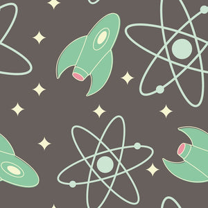 The Gray Furious 50s Atomic Fabric is part of the Furious 50s Fabric Collection is printed by Sew Creative Fabrics. Digitally Printed on 100% cotton.