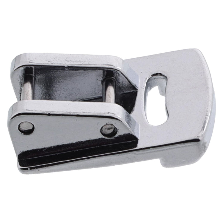 The Gathering Foot is helpful for light and medium-weight fabrics. It allows you to effortlessly make yards of ruffles and frills. The bottom of the foot is raised behind the needle, and there is a thick bar in front of the needle to gather and attach the ruffle to a flat piece of fabric.