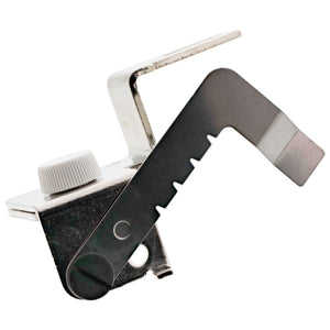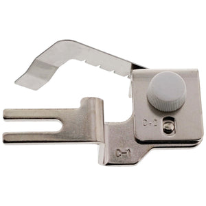 This Gathering Attachment creates a ruffle in light to medium-weight fabrics. It can trim edges, sew the ruffle to a flat fabric, and overlock in one operation. This attachment is to be used with a gathering foot.