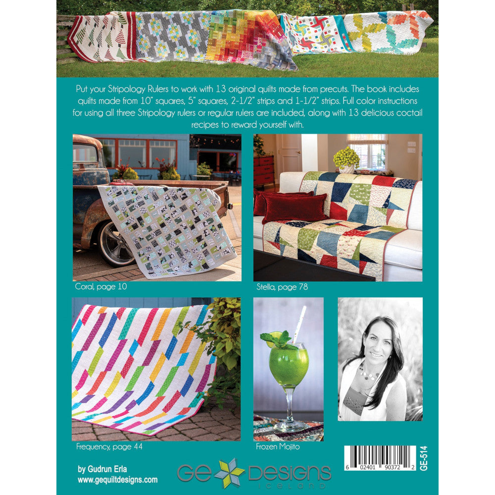 The Stripology Mixology Book features 13 original quilt patterns made from precuts. Stripology Mixology includes quilts made from 10" squares, 5" squares, 2-1/2" strips and 1-1/2" strips. Full instructions for using the Stripology rulers or regular rulers are included in the 84-page book. Quilts featured in this book include the Stella, Coral, Sandy, Marina, Rainbow Ruth, Charm Shuffle, Two Timer, Strippy Forest, Frequency, Crooked Path, Cartwheels, Camilla, and Rocky Road.