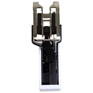 A Dual Feed Walking Foot works great with thick or multiple layers of fabric. The foot allows for even feeding of the material and makes machine quilting a snap. Great for making straight lines and for accurate sewing together of your fabrics.