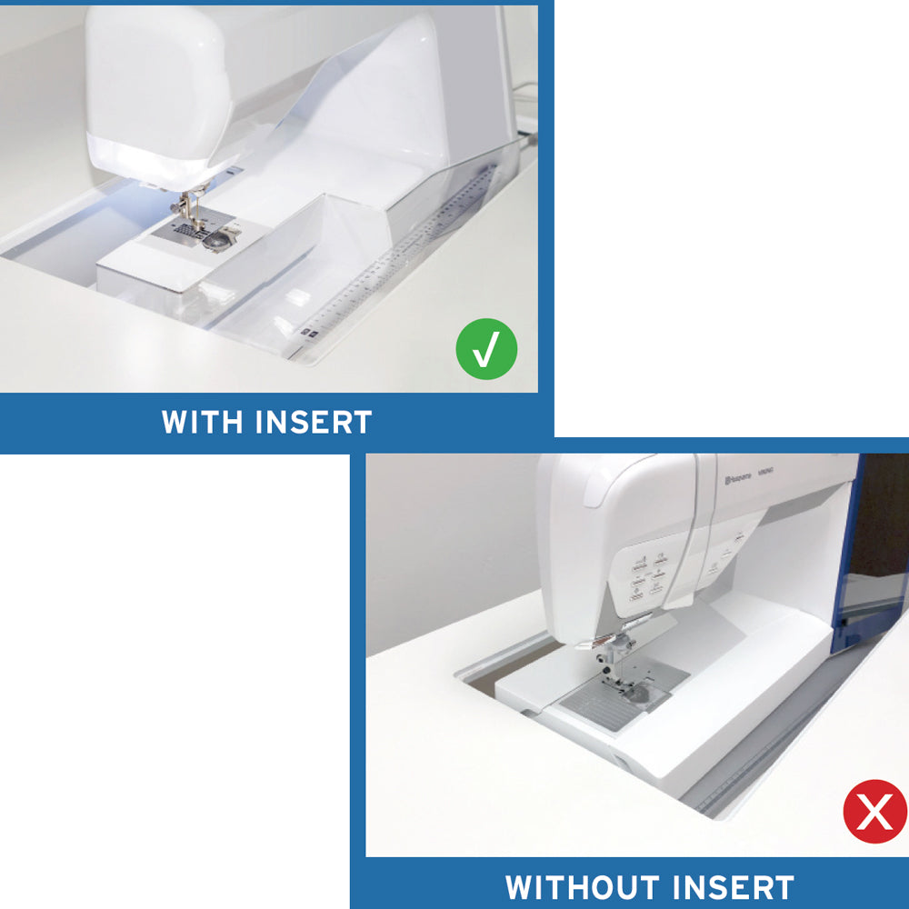 If you choose to add a custom insert for your table, please note we will need your machine's brand and model number. Each acrylic insert is custom-made to fit your machine and table combination. These inserts are designed to fill the gap between your sewing machine and cabinet opening. This ergonomic work surface will allow for neater stitches, less fatigue, and a better sewing experience! If you order a custom acrylic sewing insert, it will be shipped separately and delivered later than the table since they are custom built.