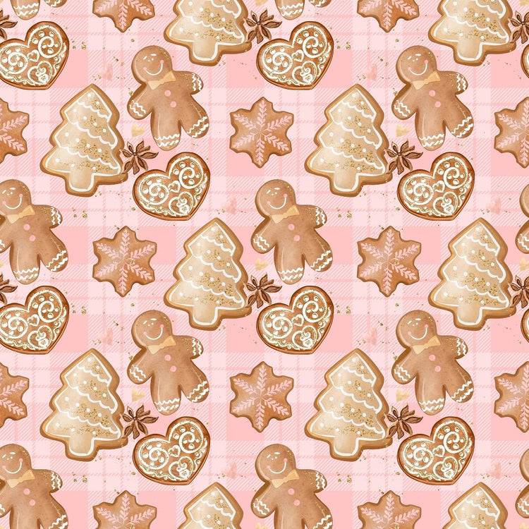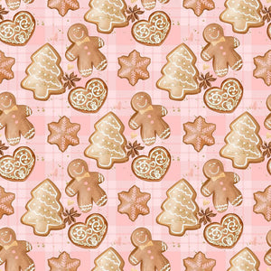 The Pink Gingerbread Cookies On Plaid Fabric is part of the Gingerbread Fabric Collection printed by Sew Creative Fabrics. Digitally Printed on 100% cotton.