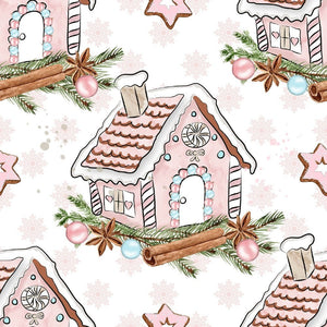 The Gingerbread Houses on Snowflakes Fabric - White is a part of the Gingerbread House Fabric Collection printed by Sew Creative Fabrics. Digitally Printed on 100% cotton and measures 43-44" wide. Sew Creative Fabrics prints are only available through Sewing Parts Online, not sold in stores or anywhere else online. * Proudly Manufactured in Dickson, Tennessee USA! *