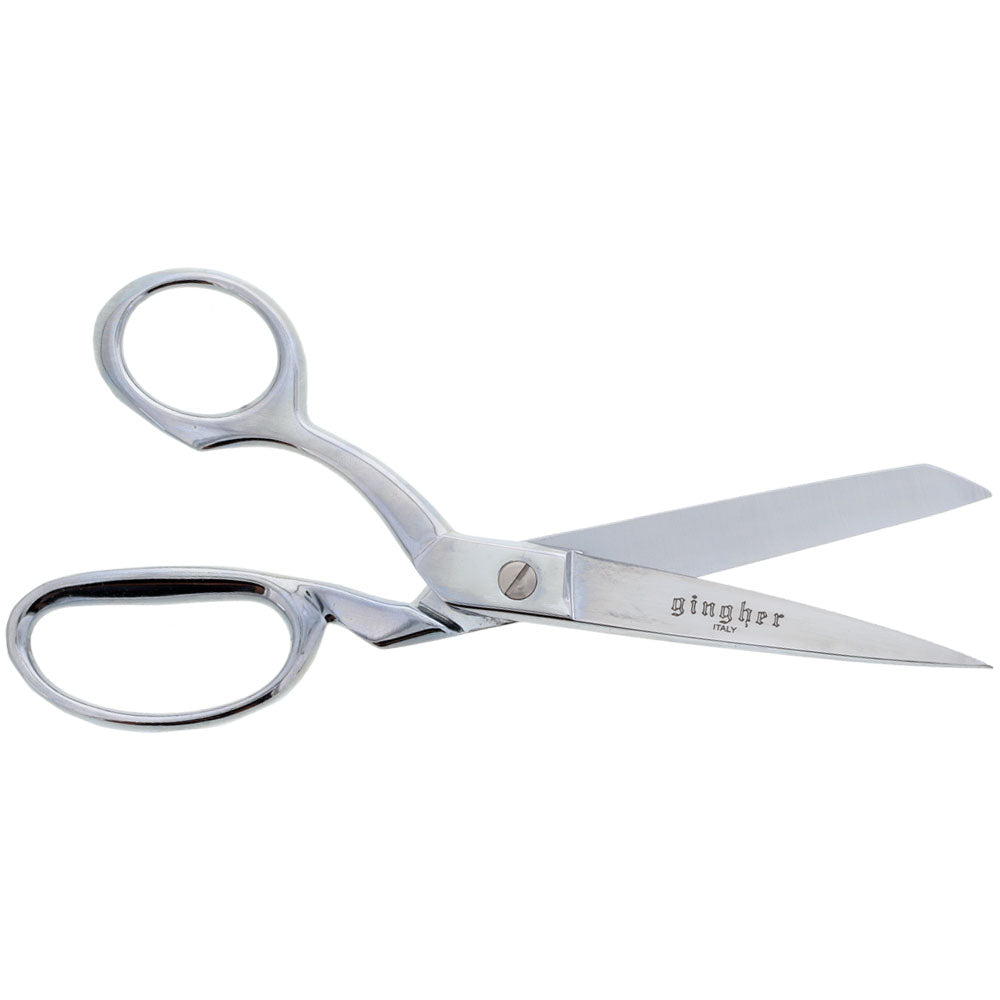 Gingher 8" Straight Blade Dressmaker Shears are uniquely designed for left-handed users. Cut multiple layers of fabric, patterns, and trim seams with the Gingher 8" Straight Blade Dressmaker Shears. The sharp knife edge cuts flawlessly while the bent handles allow for smooth cutting across any flat surface. Gingher 8" Straight Blade Dressmaker Shears have a handsome double-plated chrome over nickel finish.