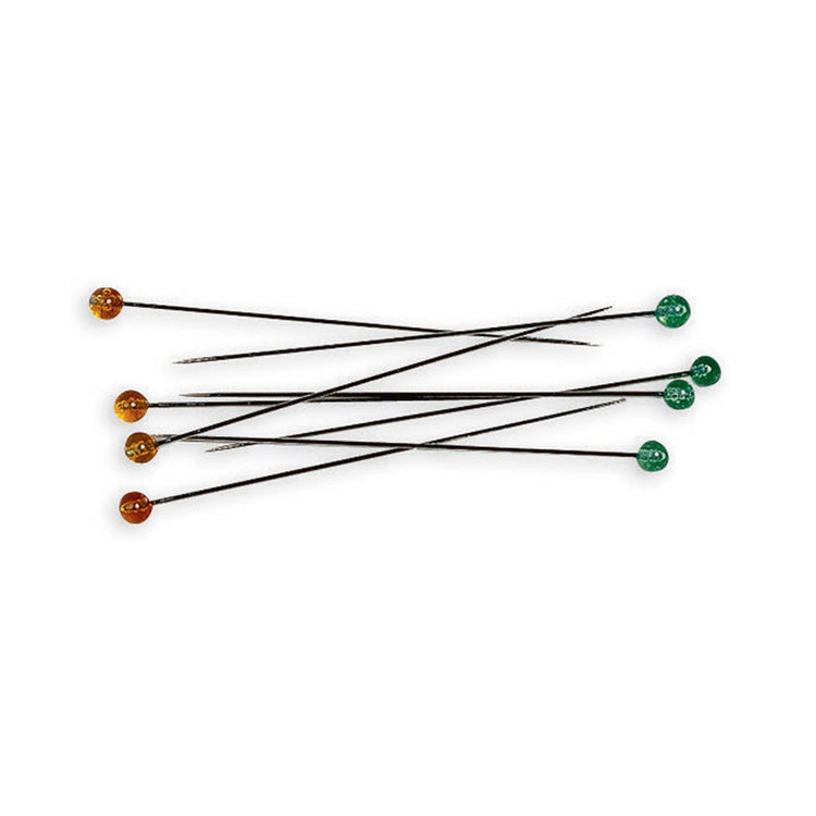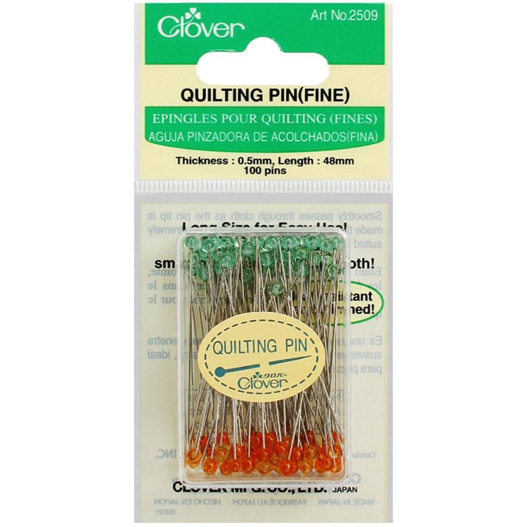 The Clover Fine Quilting Pins will pass through fabric smoothly, as the pin tips are thin and sharp. These long-size pins are especially suited for quilting, and the glass heads are heat resistant and safe for ironing. Size: 0.5mm x 48mm.
