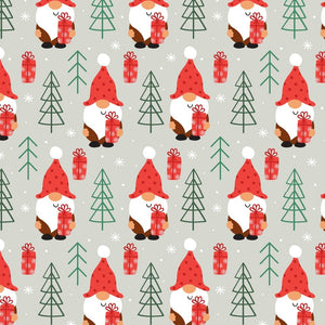 The Gray Gnome With Christmas Present Fabric is part of the Christmas Gnomes Fabric Collection printed by Sew Creative Fabrics. Digitally Printed on 100% cotton.