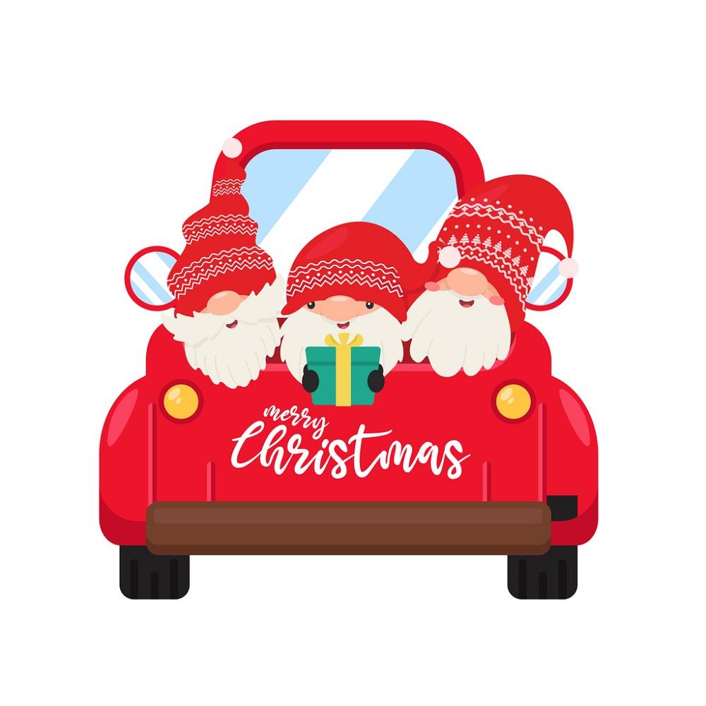 Gnomes in Red Truck Fabric Panel Details