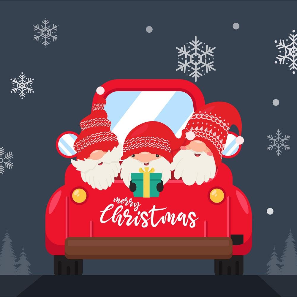 Gnomes in Red Truck Snowflakes Fabric Panel Details