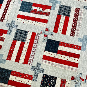 Designed by Juliah Tiedmann, the God and Country Quilt Pattern from Easy Piecy Quilts is embellished with flags and crosses, signifying God's blessings on America and representing military service members who have bravely served this land. This beginner-friendly pattern is traditionally pieced and can be completed entirely from 2-1/2" fabric strips. This pattern includes instructions to create a wall-hanging, throw, queen, and king-sized quilt. The God and Country Quilt Pattern has detailed instructions and a suggested list of materials.