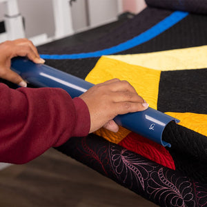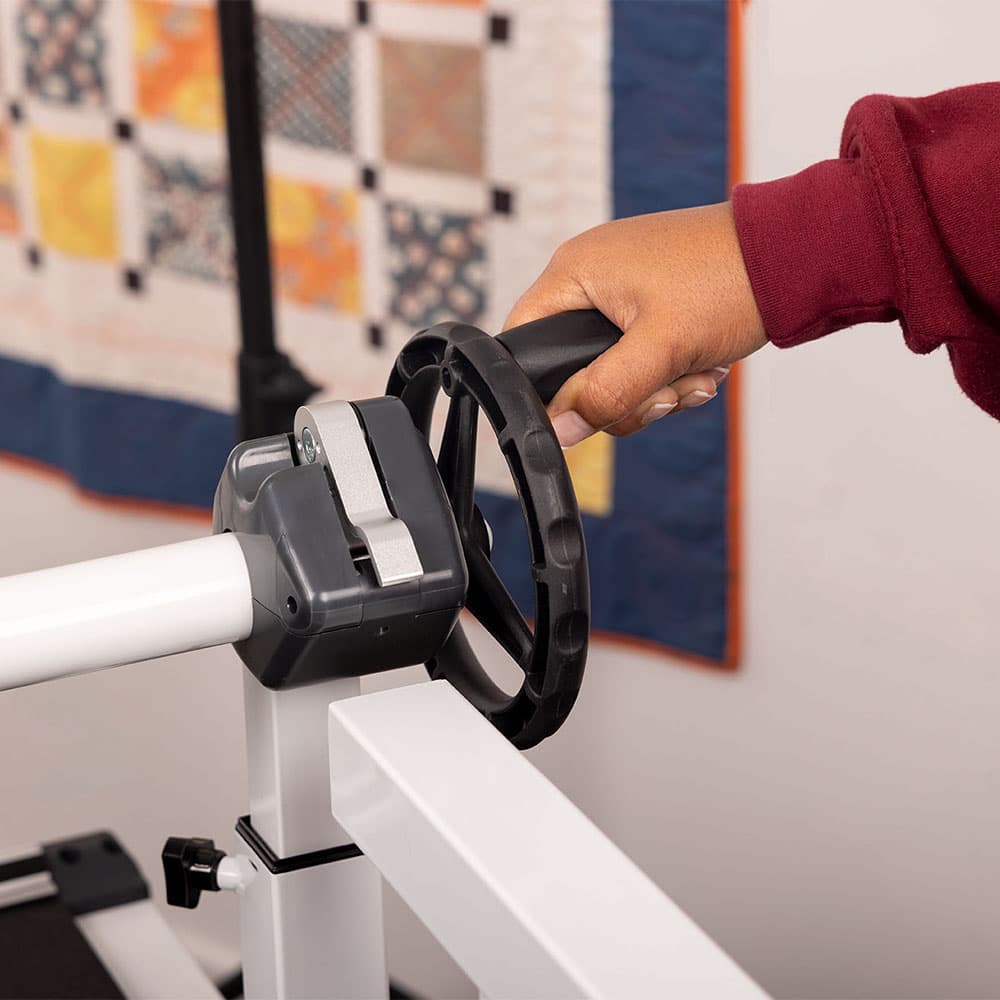 Roll all of the layers of your quilt with the take-up rail hand-wheel. This wheel moves your fabric to the next area of your project, which makes quilting simple and effortless. Grace has also updated the ratcheting system. They've taken the previous bulky versions and fine-tuned them into a sleeker internal structure that's smaller, simpler, and just as strong as its predecessor.