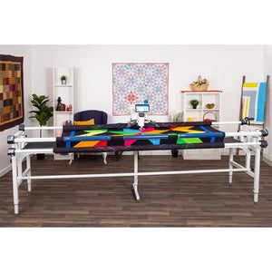 The frame's modular design allows quilters to create a frame that perfectly fits their space and situation. Choose from three frame sizes: 8, 10, or 12 feet. The Evolution Elite has a depth of 48", giving you plenty of space to quilt.